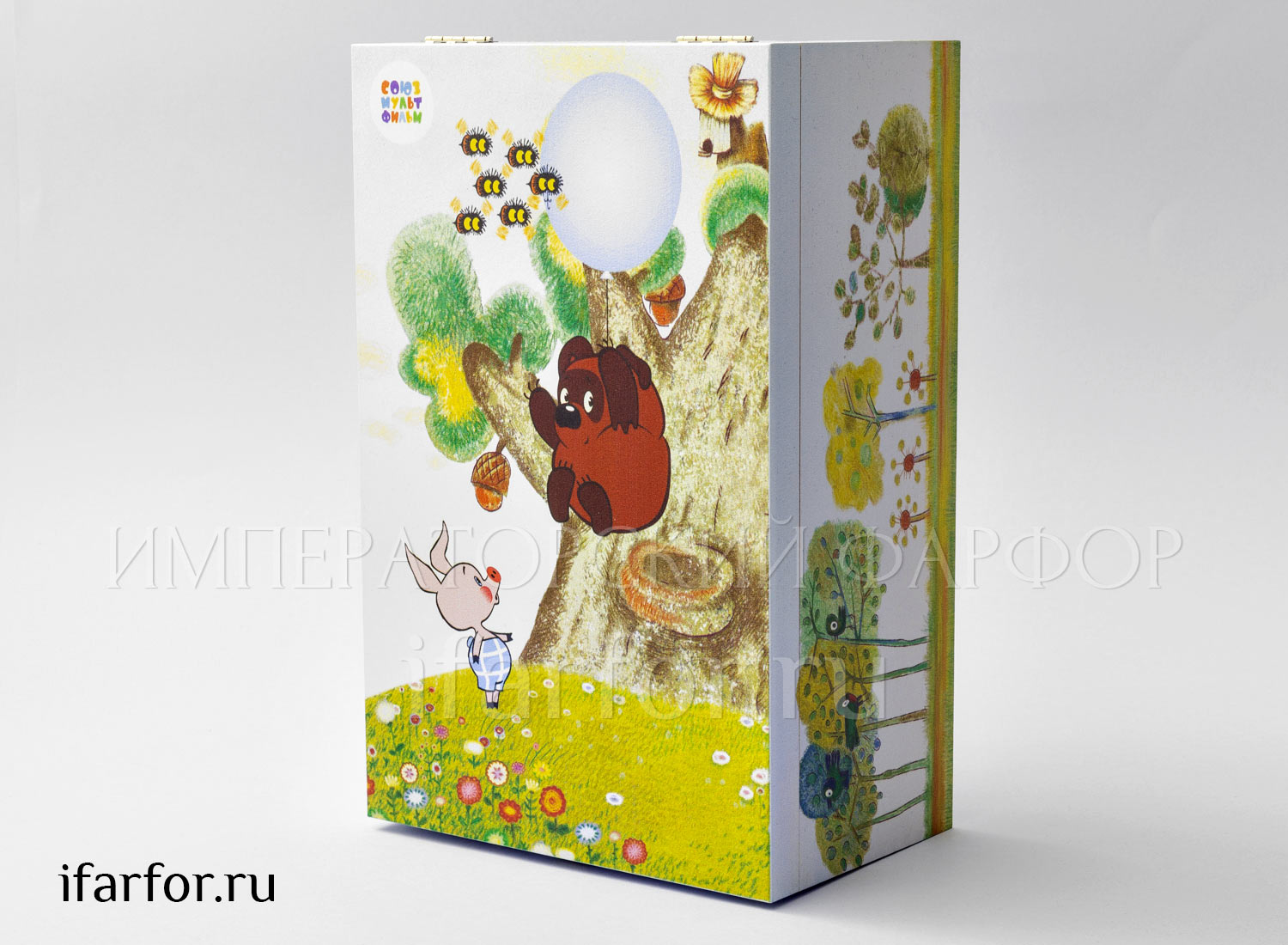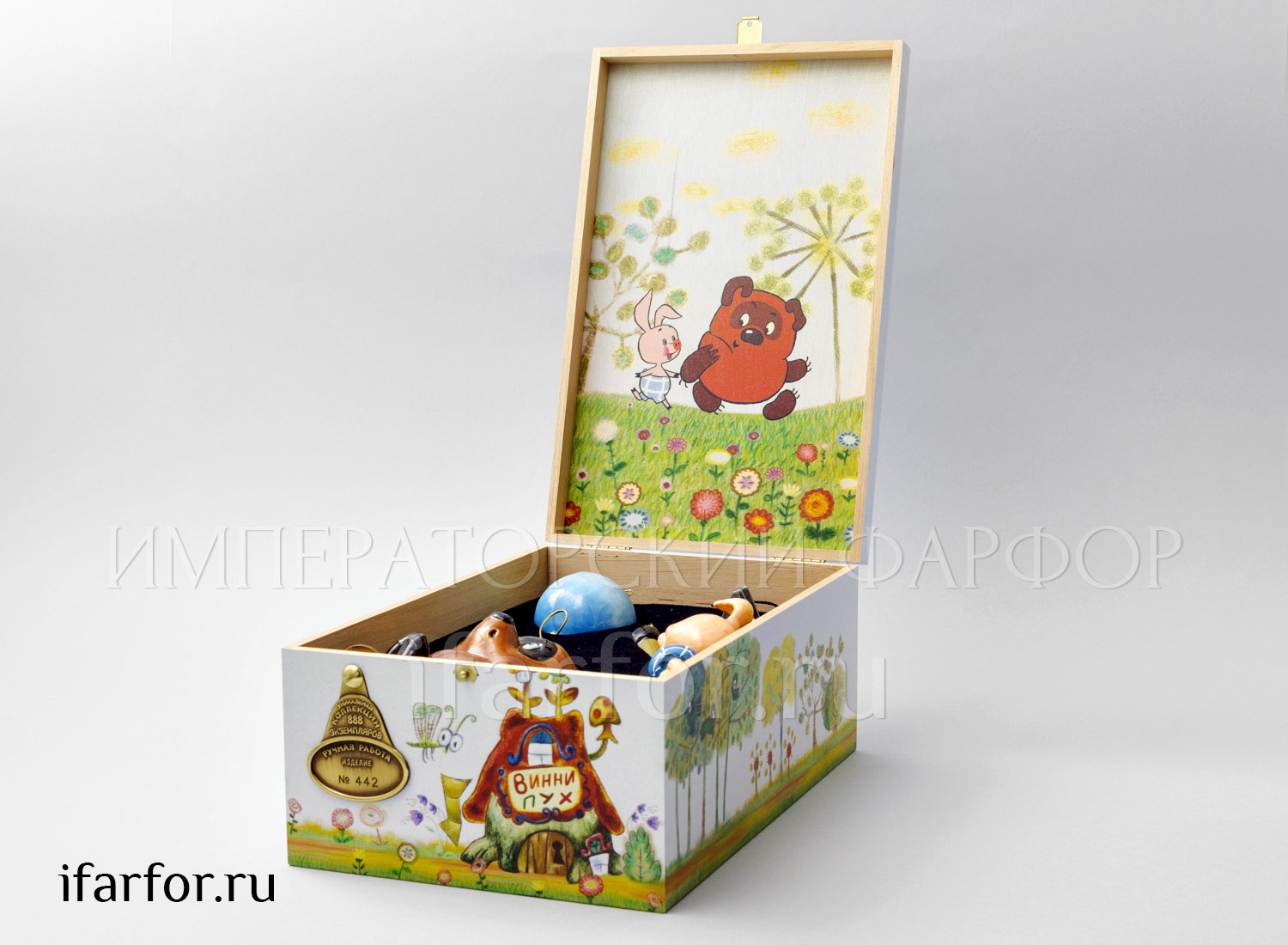 Набор коллекционных елочных игрушек из стекла ручной работы. Выполнен по эскизам и лицензии Союзмультфильма. Выпущен ограниченным тиражом: набору ёлочных игрушек присвоен свой, уникальный номер.