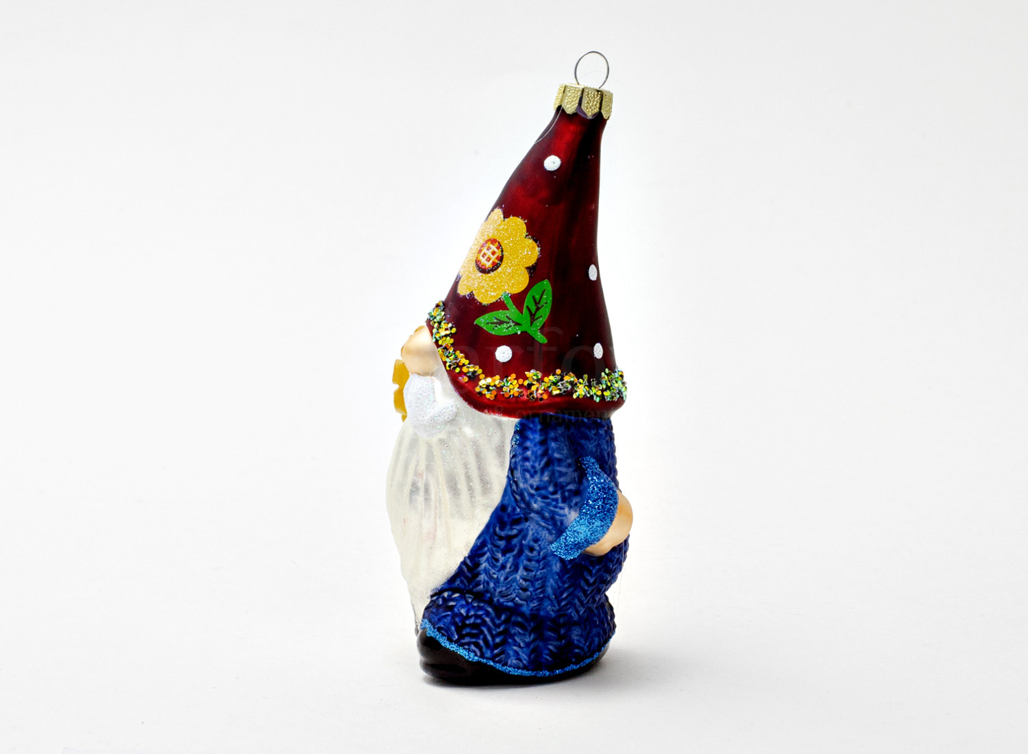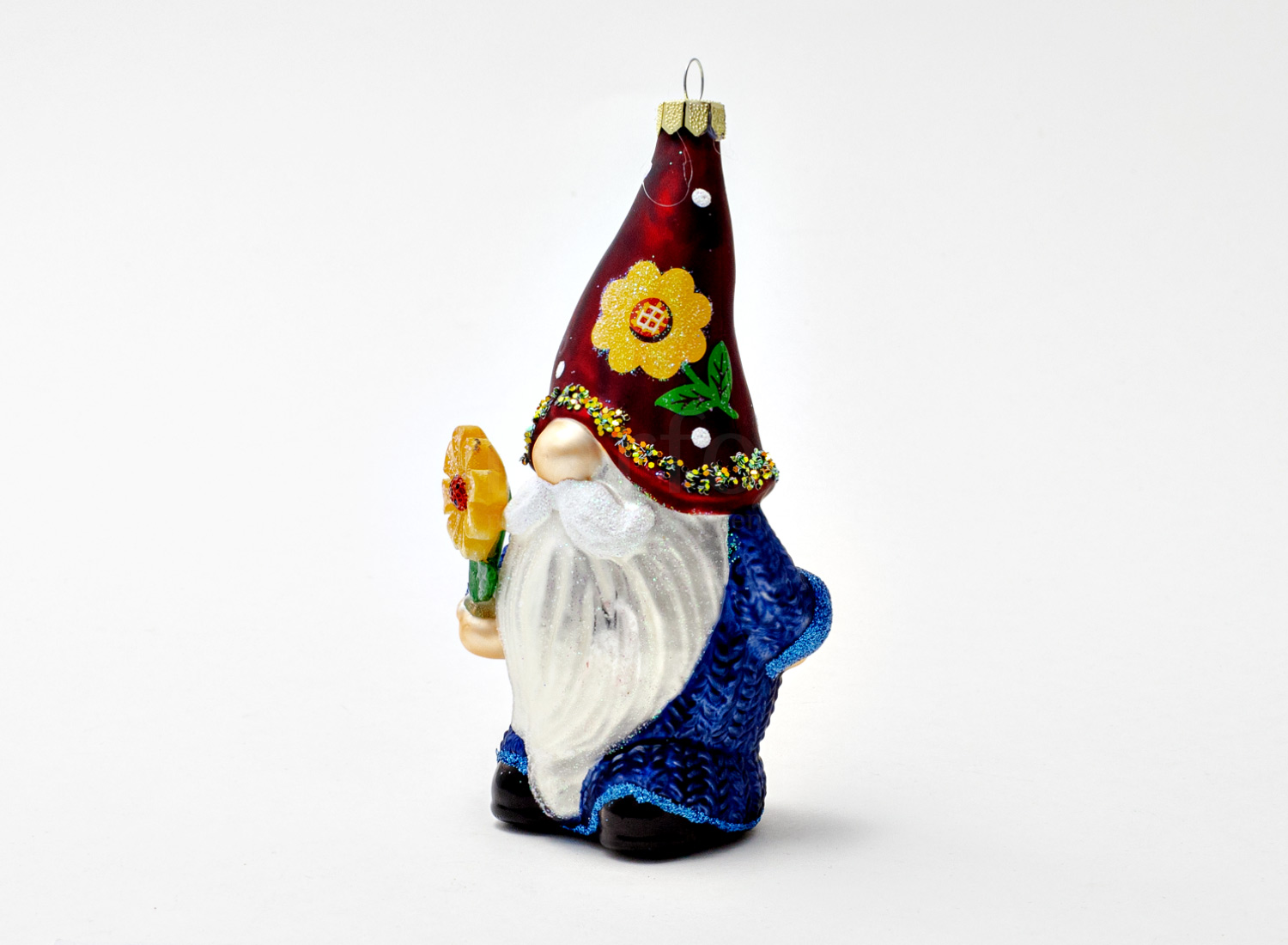 Елочная игрушка «Садовый гном с цветочком»