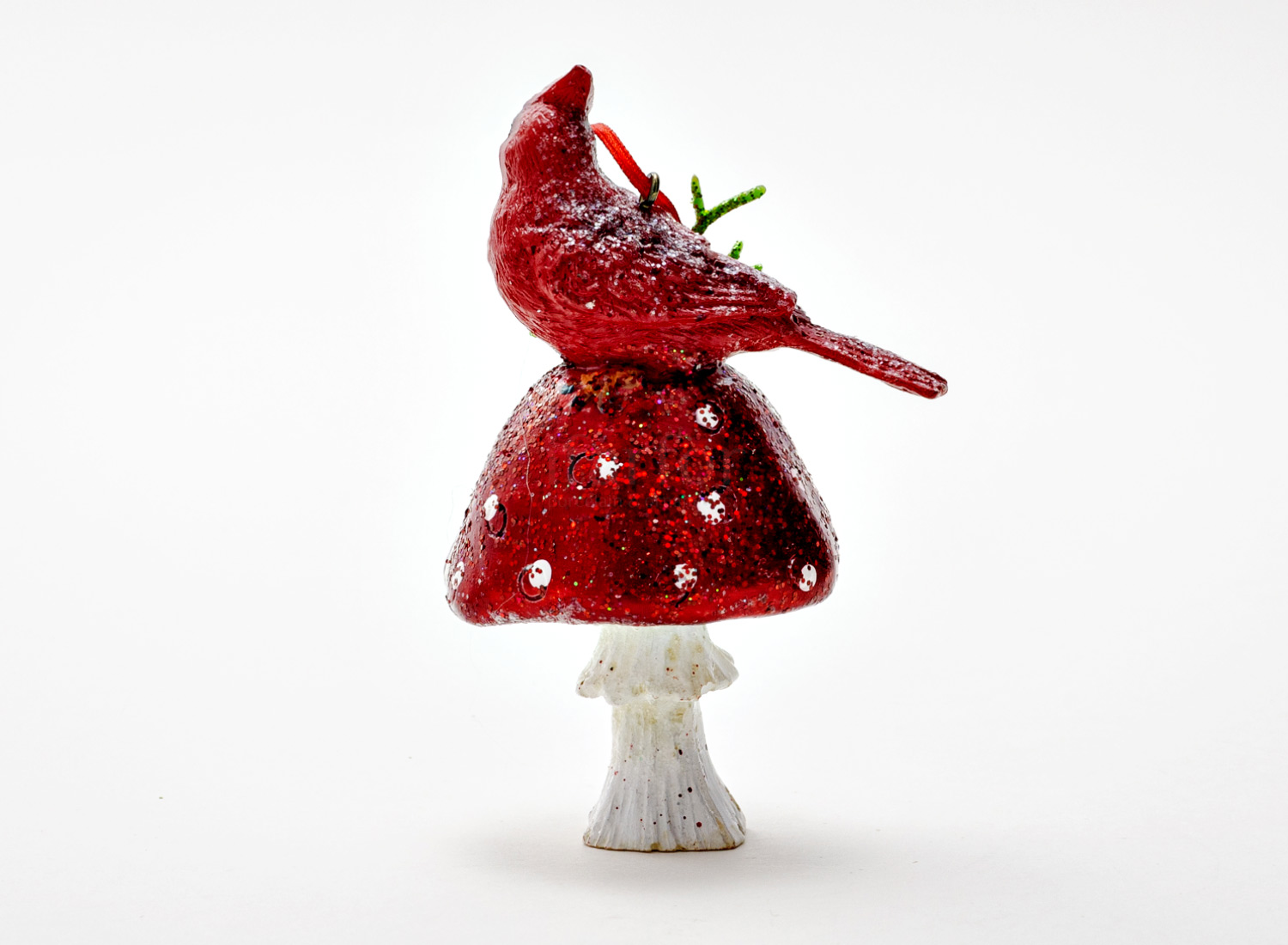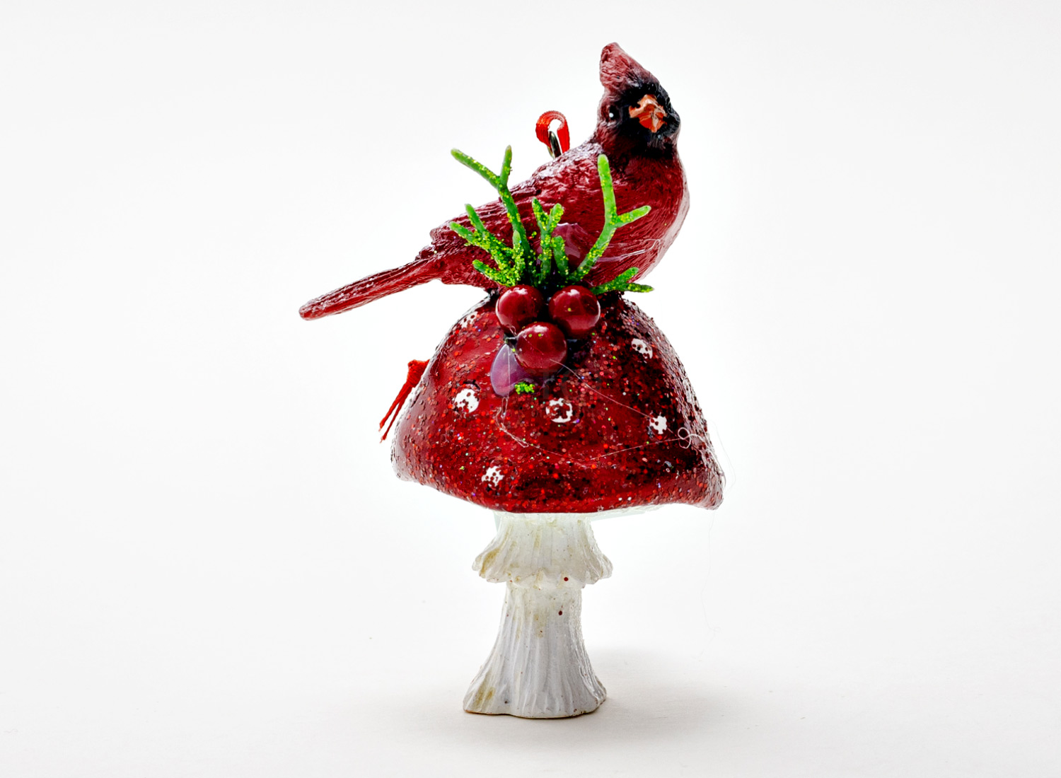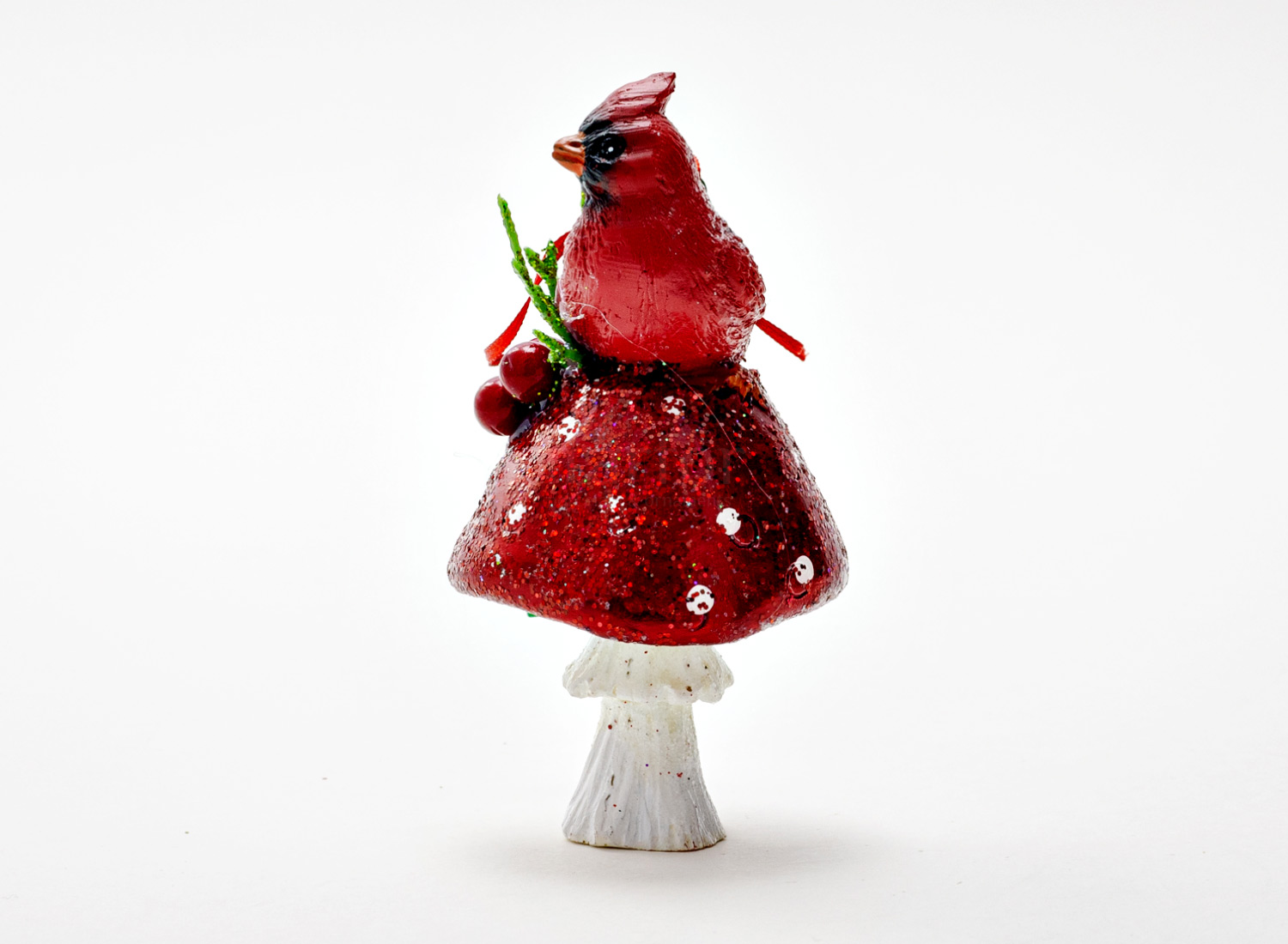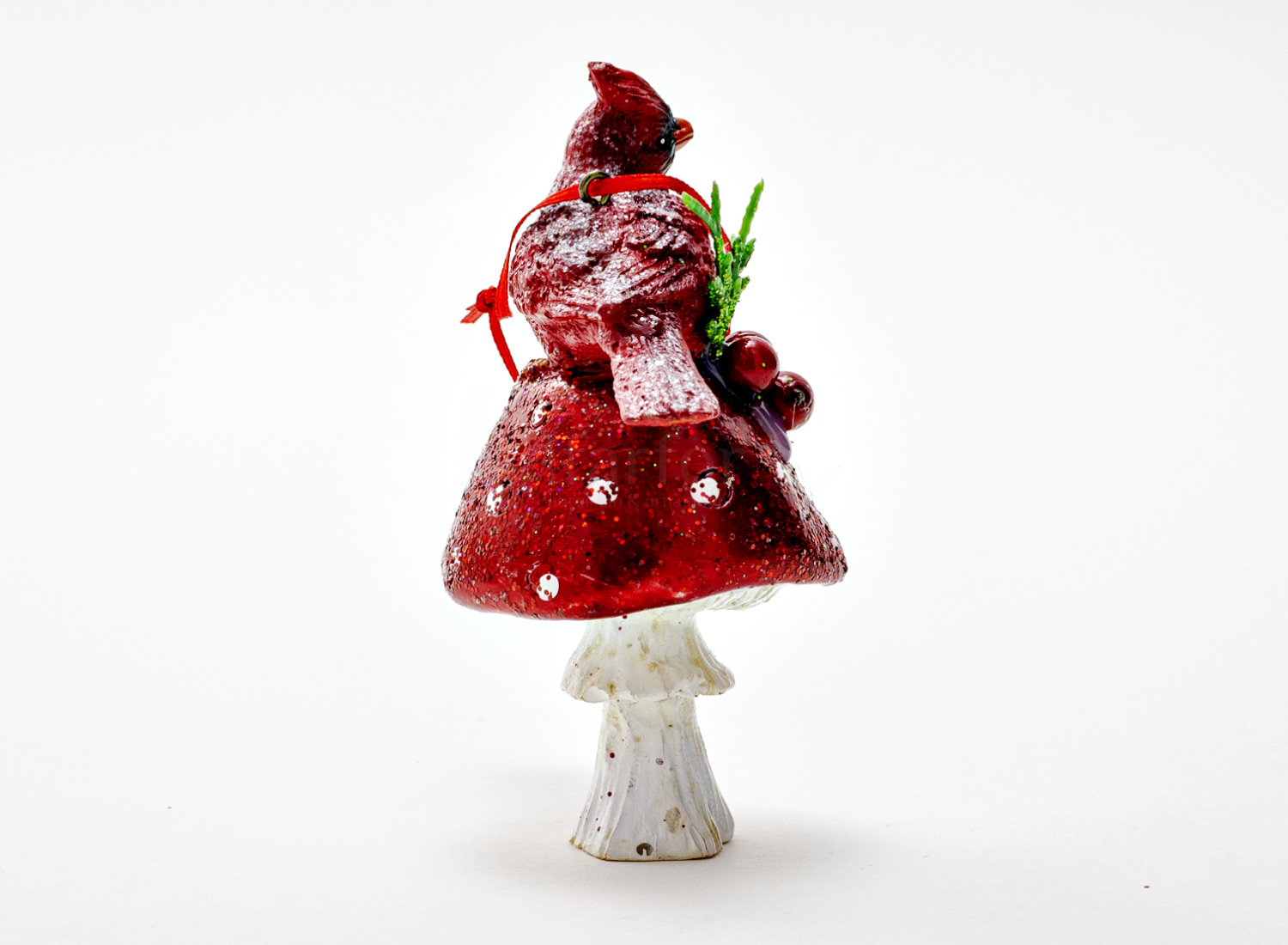 Елочная игрушка «Кардинал на мухоморе 2»