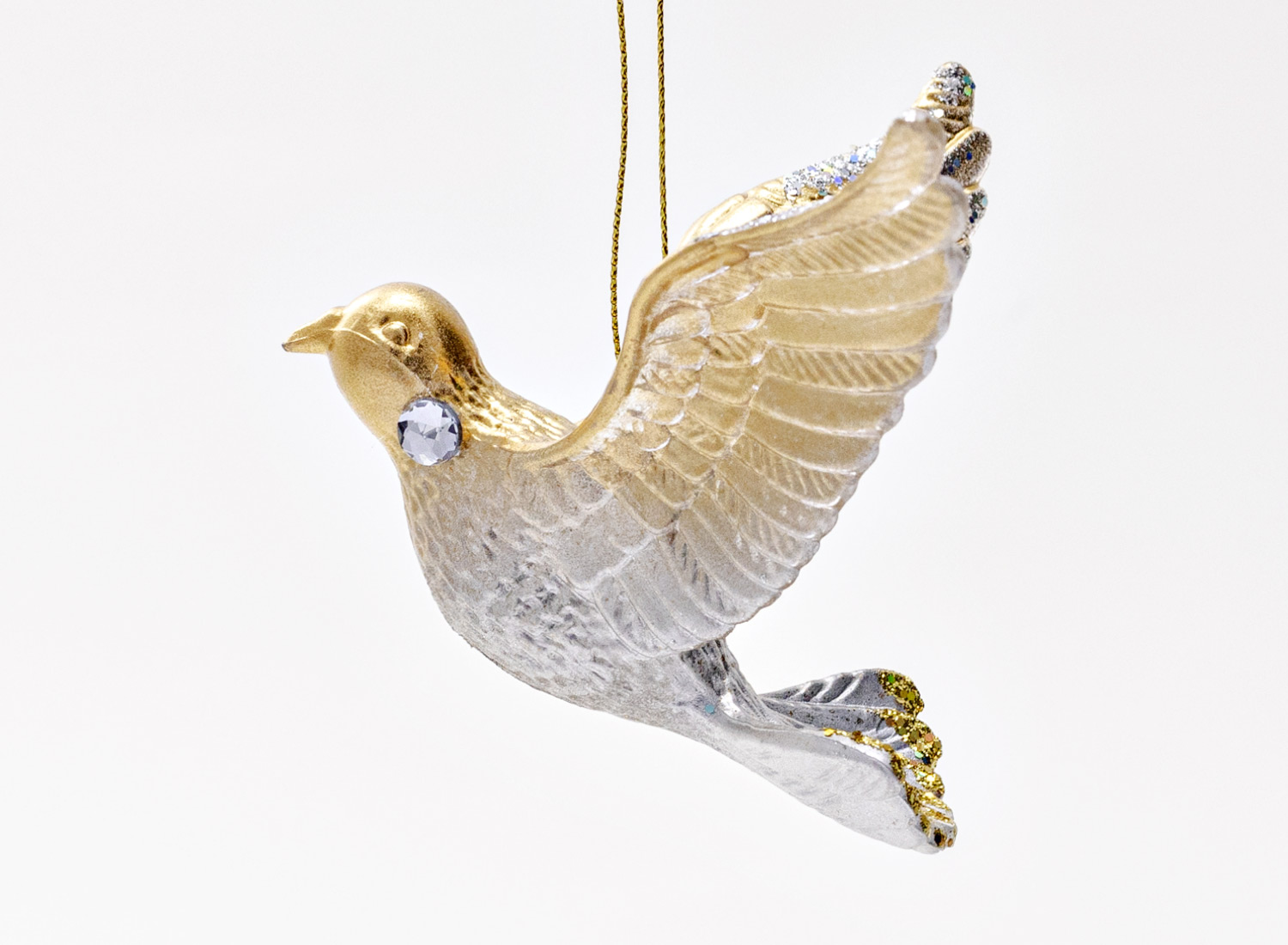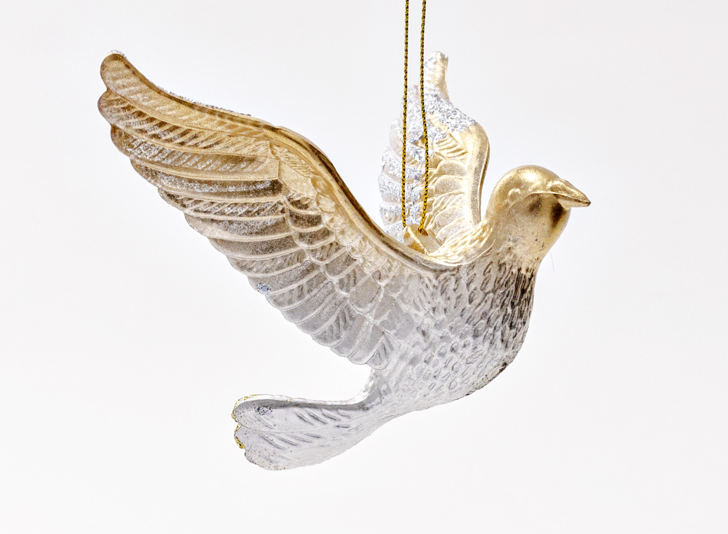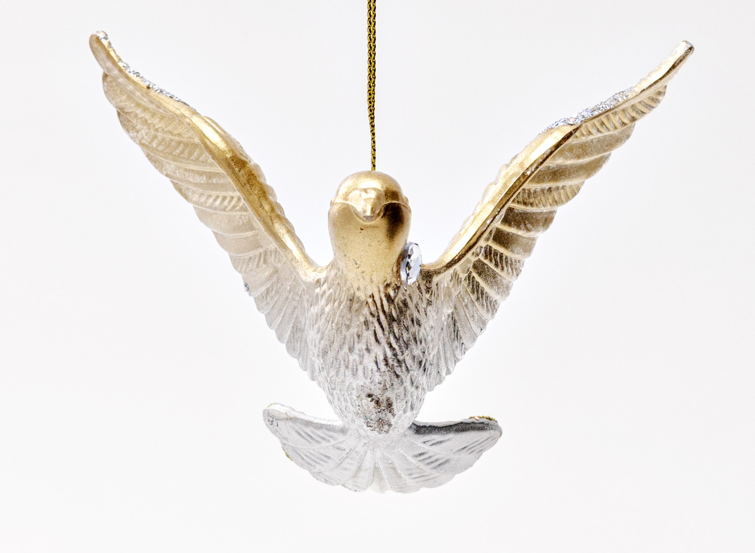 Елочная игрушка «Голубь серебристо-золотой 2»